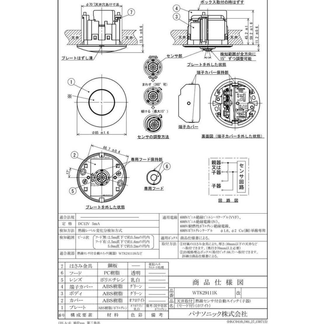 パナソニックWTKシリーズ天井埋め込みタイプを使用